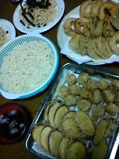 今夜は何しようかなー♪・・・・・・・ 「うどん」パパの心には いつもいつもうどんがある。。。 それは分かっているんだけど、お昼は明太子パスタだったのに 麺類ばっかりの我が家です。 パスタも残っているので うどんも少しだけでーす。 かぼちゃの天ぷらと サツマの天ぷら~冷蔵庫にあったシューマイも天ぷらにしちゃいました、シューマイはそのまま揚げると焦げるので、衣をつけてあげるとひと味違っておいしいのソースかけて食べてもおいしいよ。 上の二人は バイトで遅くなるのでとっておかなければ にほんブログ村 にほんブログ村 こちらでは 今日運動会の小学校が多かったです。涼しくなって 暑すぎずいいお天気でした中学校は来月なんです。一日中 遊んで勉強しないで寝られちゃうとねえー・・・・・・・・何時に起こしてあげようか 思案中ですテストが近いーっていうのに