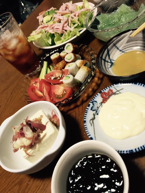 夜中に帰ってくる パパのために、お酒の肴を用意します。 糖尿予備群なので こんな感じです。 最近は血糖値も順調 調子いいみたいです。