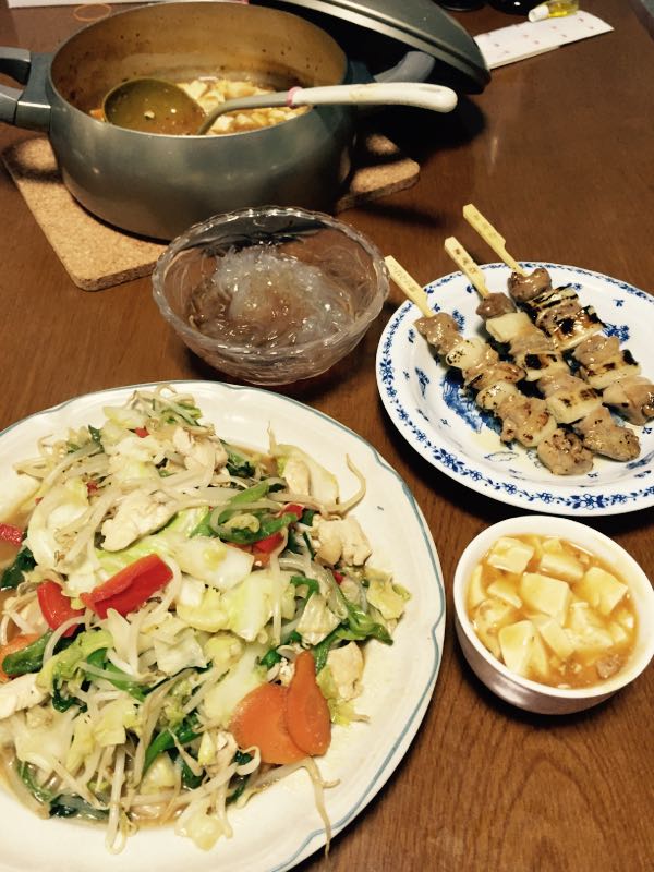 最近は 丸美屋の麻婆豆腐にはまっています。中辛が丁度いい辛さです。 野菜炒めも大量に作りました。