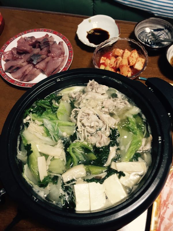 お天気よければ ドライブ行きたかったなあー せっかくの日曜日なのに 何もない日 のんきに テレビみて 遊んでました。 今夜は 豚バラを使って お鍋でーす。 ぶりが半身で お刺身お買い得だったので ぶりもしゃぶしゃぶしちゃいました。 夜8時には 何もすることなくて ゴロゴロ〜〜 秋の夜長 ちょっとため息ついちゃいます。
