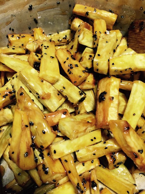 秋、ですねー さつまいも といえば 大学芋 食べ過ぎ 危険とおもいながらも たくさん作ってしまいます。 毎年のことなので タレが結構うまくつくれて うれしいのです。
