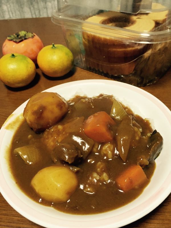 庭の柿とみかん そろそろ収穫しなきゃなあー だいぶ良い色になってます。 じゃがいも丸ごと入ってます。 今日は 2食 カレーライスです。