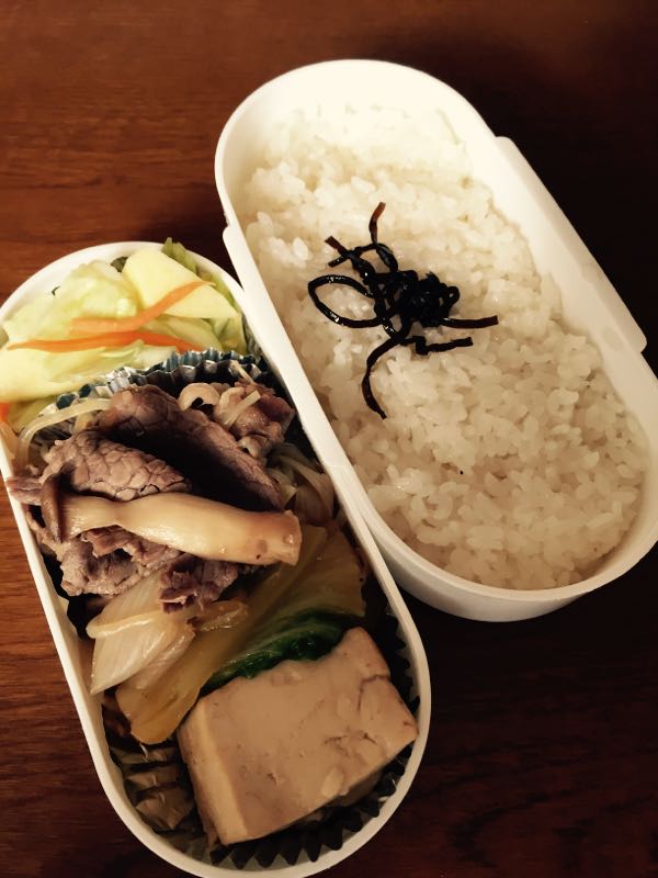 今日のお弁当は すき焼き弁当。 夜中に帰って来ても なかなかお鍋の場合 温めてくれないから 夕飯の予定だったすき焼きを お弁当にしました。 とても疲れているみたいなので あと1日頑張ってほしいなあー 明日は お休みなので パパとドライブです。
