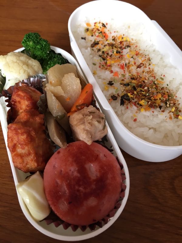 今日のお弁当は ソーセージハムのお弁当。 大根と鶏肉の煮物や野菜をたくさん入れちゃいましょう。 ブロッコリー カリフラワー ほうれん草 たくさんの野菜を茹でて 作り置きしました。 最近は甘酢漬けが マイブーム。 今夜は何 食べようかなー