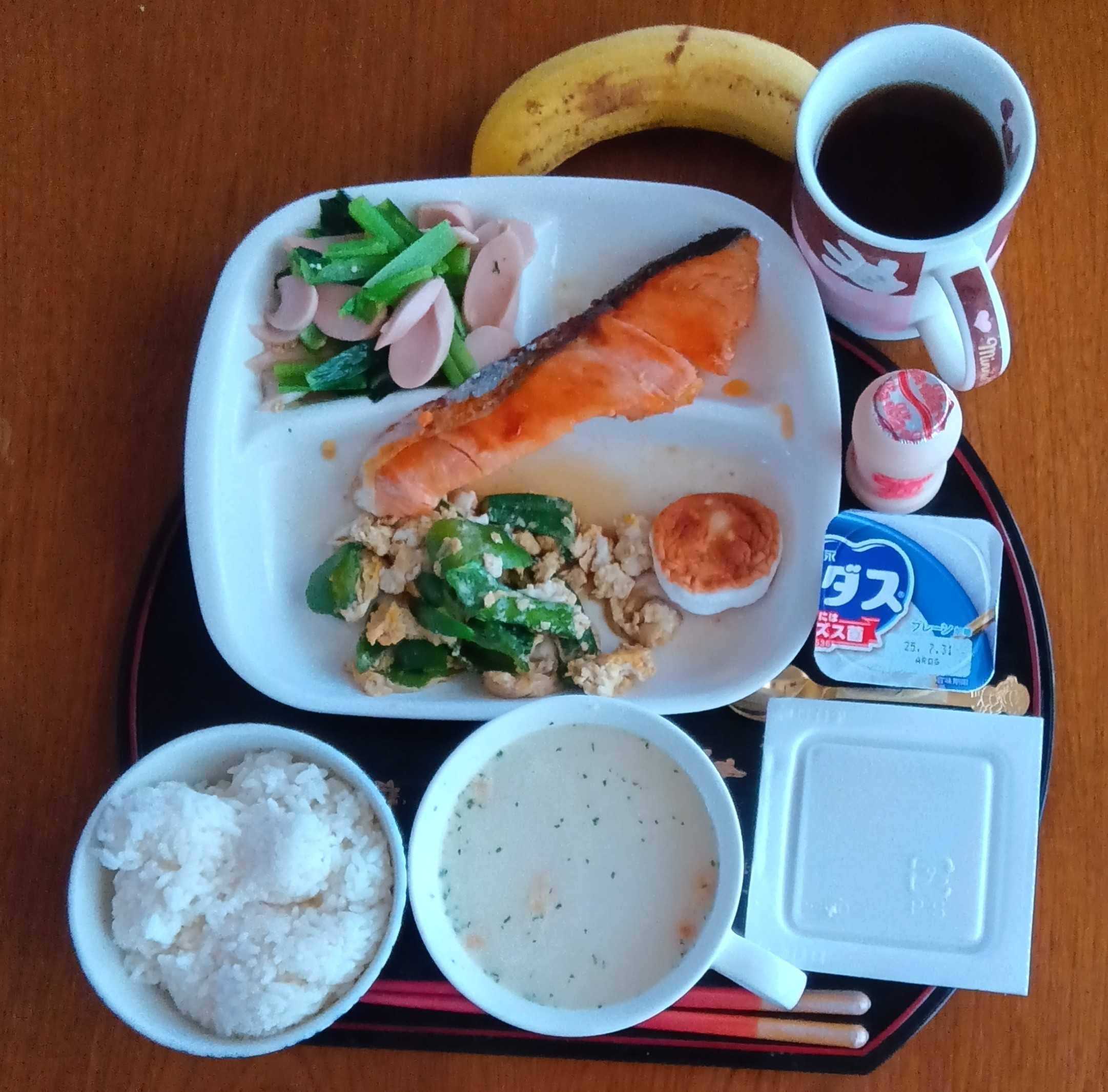 お弁当のおかずの残りは朝ご飯のおかず。鮭も高くなったわ。昔は100円だった切り身が今は200円。今日の鮭は身も厚く美味しい。鮭は当たりハズレがあるが、これは当たり。 納豆は大粒国産納豆、乳酸菌飲料、ヨーグルト、バナナもある。ポタージュスープも美味しい。タンパク質は大丈夫だが、カルシウムが足りないなぁ〜食前は糖尿病の薬、食後は高血圧の薬。時間をかけてしっかり食べた。栄養は大事、食べ過ぎに注意。「暑いから、家で寝てな。」毎日言ってくれるパパの言葉。私は素直だから、有り難く受け止める。感謝。【期間限定クーポンで半額&さらに2個セットで55%オフ!】銀鮭 切り身 肉厚 10切れ 【無塩・有塩が選べる】 加熱用 鮭 さけ サケ 焼き鮭 焼き魚 魚 さかな 冷凍 家庭用 お弁当用 お弁当 おかず 惣菜 お惣菜 冷凍食品 冷凍総菜 お中元オクラ 1kg 有機栽培 鹿児島県産 有機JAS 化学肥料・農薬不使用 おくら 生 ネバネバ おひたし 和え物 冷蔵便 無農薬 発送期間6〜10月