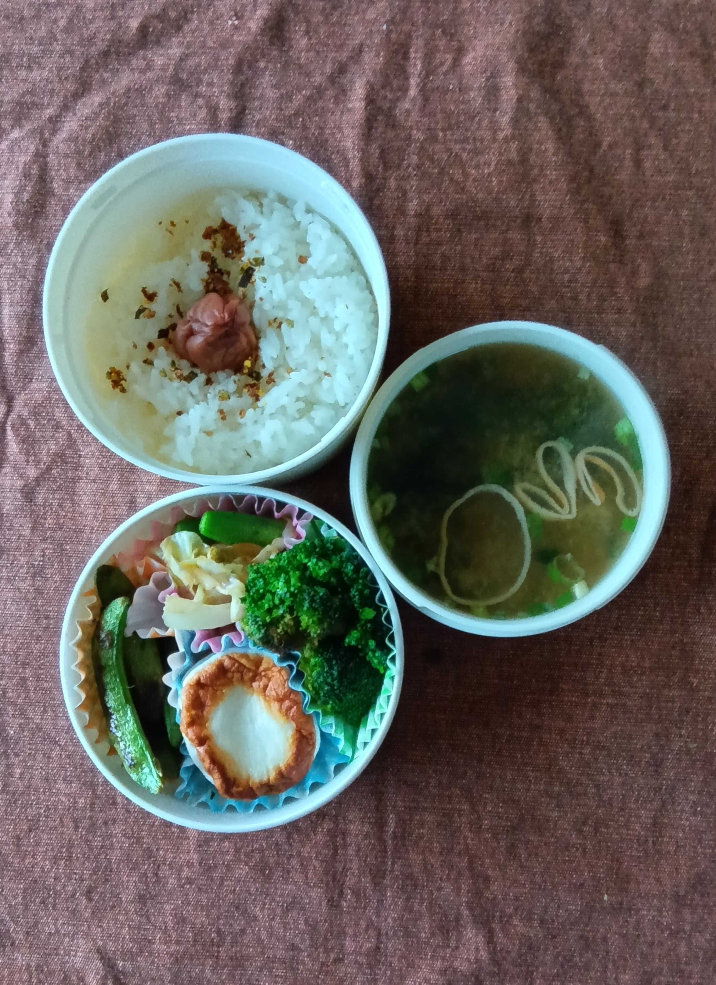 今朝は4時前から目が覚めてしまった。寝るのが早いから仕方ない。今日のお弁当です。チーズ入りはんぺんブロッコリー焼きスナップエンドウ焼きキャベツオクラ炒めご飯(味道楽ふりかけぱっぱ 梅干しのせ)味噌汁(インスタント ワカメ)「あまり食べられないから少なめでね。」朝もパン1枚。お腹の調子が悪いパパ。困りましたね〜絶対に仕事は休まない。今週もあと1日。持ちこたえておくれ。[送料無料][最強配送][あす楽] 美味いとこどり 冷凍 ブロッコリー 小分け500g×4パック ※※野菜ソムリエ監修品 安心品質保証付き冷凍野菜[スナップエンドウ 500g]おかず お惣菜 お弁当 炒め物 丼ぶり パーティー 業務用サイズ 業務用食品 業務用 大容量 お買得サイズ お買得 お得サイズ コスパ 大袋 大サイズ ジャンボ楽天生活応援米