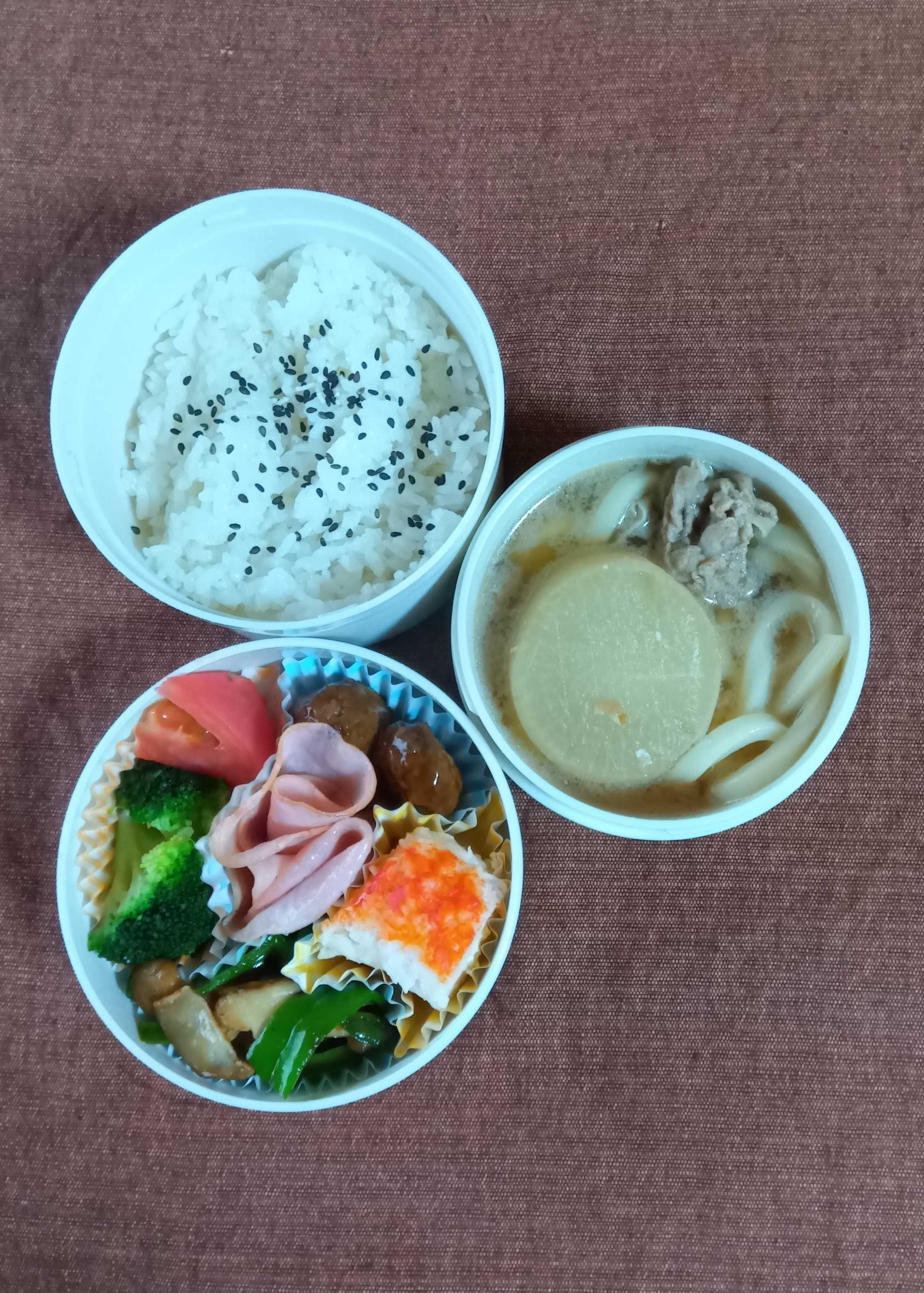 今週最後のお弁当。金曜日が一番嬉しい。明日、休みだから。私は毎日休みだけどねー今日のお弁当です。かにかまぼこ(マスタードソース入り)ピーマン椎茸生姜煮ブロッコリー中華炒めトマトロースハム焼きミートボール(黒酢タレ)ご飯(ごま塩ぱっぱ)おでんうどんもうね、たいした食材もなく工夫もない。とにかく埋まればいいという、お粗末なおかず。ごめんなさい。昨日、郵便局の再配達を頼んだのだが来ない来ないと思っていたら、ポストに不在票が。うちは大きな家なので玄関が2つあるが、何度言っても違う方にくる。佐川さんヤマトさんはちゃんと届けてくれるのに引き継ぎをしてくれないのかなぁ〜仕方ない今日午前中にまたまた再再配達の手続きをしたが、いまから玄関に張り紙をしておこうと思う。ときどきインターホンがならないことがあるうちも悪いのだがこちら側にはほとんど客は来ないのだ。あ~ ストレス。今日午前中は 買い物に行けなくなりました。カニカマ 香り箱 極 スギヨ かにかま 内容量選択 10本入り×6個 10本入り×12個 10本入り×18個 業務用 かに風味かまぼこ カニカマボコ★マラソン・店内最大半額★ 丸美屋フーズ ふりかけ ごましお 250g [ 1袋:250g / 2袋:500g ] 業務用 大容量 丸美屋 ごま塩 ごま 塩 赤飯 しお 黒ごま ごはんのおとも 白いご飯 弁当 「ごましお」 JC メール便 送料無料[送料無料][最強配送][あす楽] 美味いとこどり 冷凍 ブロッコリー 小分け500g×4パック ※※野菜ソムリエ監修品 安心品質保証付き