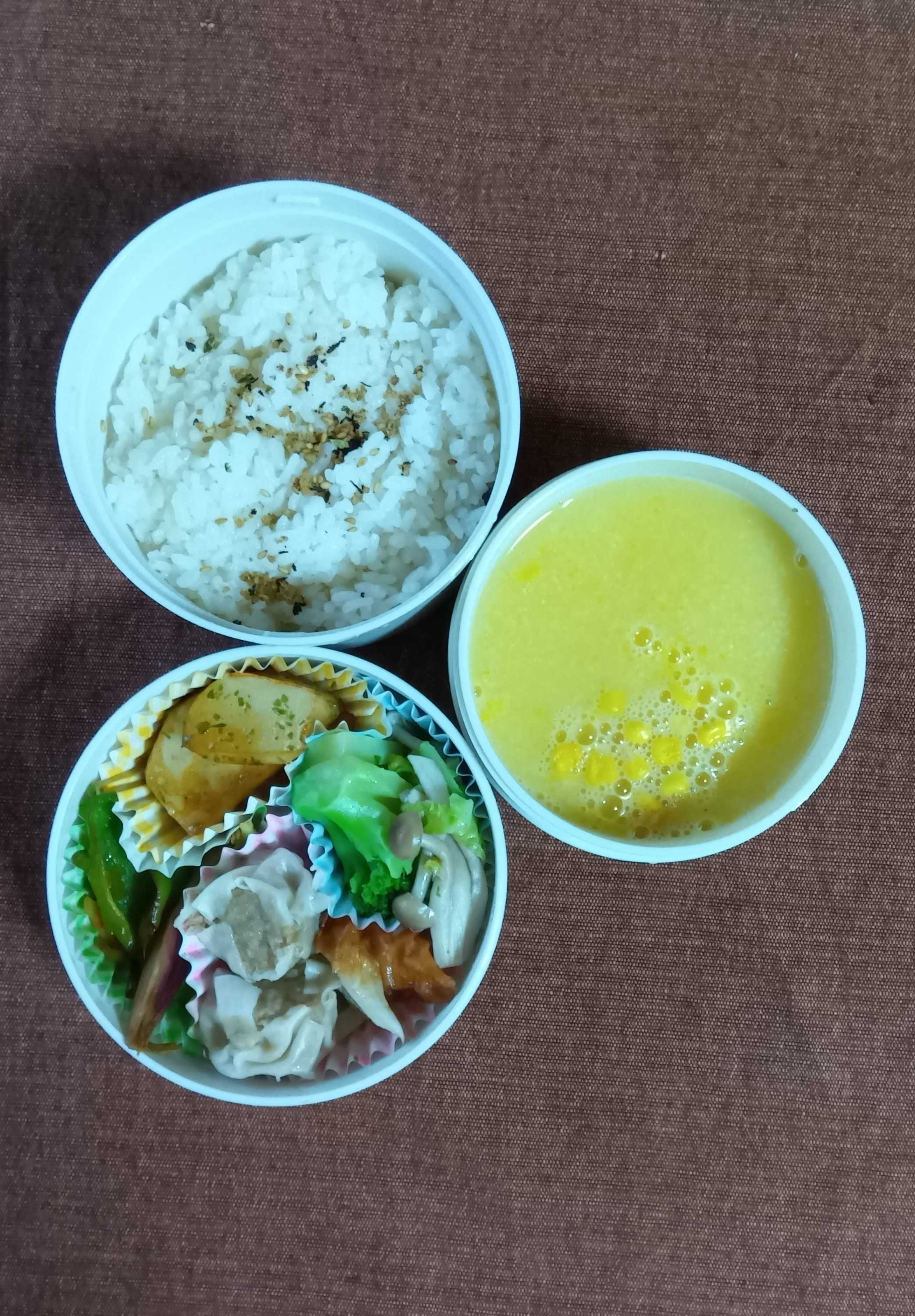 今週最後のお弁当です。カブバジルオイル焼きブロッコリーしめじ白菜中華炒めちくわ焼き焼売ピーマン茗荷ゆずポン酢炒めご飯(ごまふりかけぱっぱ)コーンスープパパはいつも元気。私は立ったり歩いたりする度に、「痛いなぁー」ばっかり。ごめんねー今日もまた、孫ちゃんがやって来る予定。明日、親子で美容院行くみたい。今日は晴れてる。でも脚が思うように動かないわ。【手包み!柔らか!】\銘柄豚岩中/ジャンボ大宝焼売 50g/個 15個×2袋セット 大きい もちもち 冷凍焼売 国産 豚肉 野菜 おかず おつまみ お弁当 家飲み 横浜中華 惣菜 点心 電子レンジ お取り寄せ グルメ シューマイ しゅうまい ギフト 熨斗 お歳暮クノール カップスープ コーンクリーム インスタントスープ(30個入*2個セット)【クノール】[クノール スープ 大容量 コーンスープ カップスープ]【マラソン限定!最大2000円OFFクーポン配布中!】《送料無料》日欧商事 ソル・レオーネ バジル フレーバー オリーブオイル 250ml (229g)