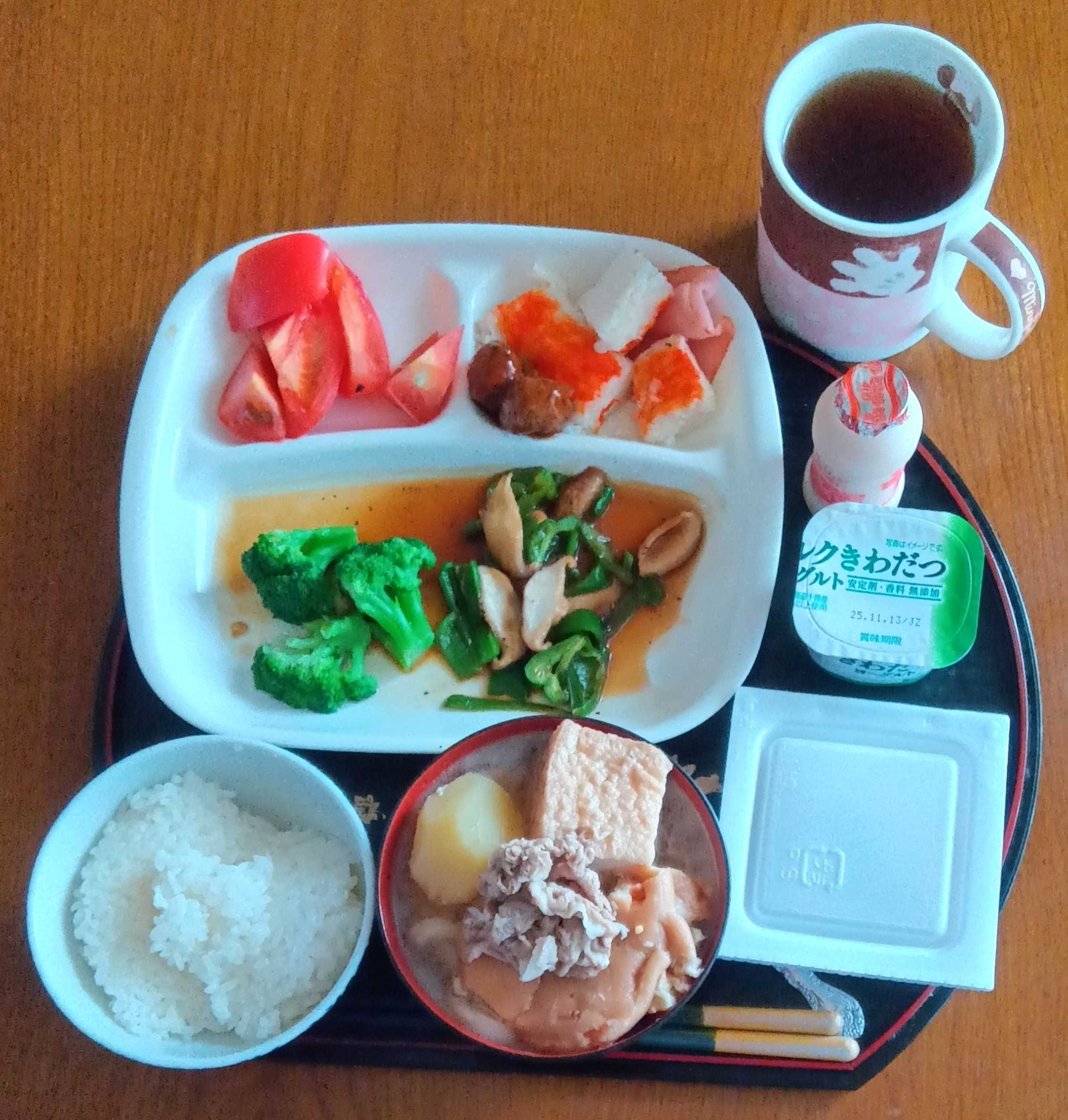夕飯のおかずの残りがお弁当のおかず。お弁当のおかずの残りが朝ご飯のおかず。何だっていいんです。昨夜のおでんにうどんを入れて、大ボリューム。国産大粒納豆、ヨーグルト、乳酸菌飲料はいつものパターン。おでんには丸ごとじゃが芋、大根、豚肉がどっさり入っている。うどん入れて煮ても、薄味で美味しい。寒いからこういうのが温まる。食前は糖尿病の薬、食後は高血圧の薬。今朝は寒いので毛糸のカーディガンをだしたわ。服の整理をしたので洗濯も多い。夏物を片付ける。扇風機をしまい、ストーブも出さないと。脚がもつだろうか、頑張る。【ふるさと納税】プレミアムフルーツトマト 定期便 6回コース 1月〜6月 毎月発送 旬 生 トマト 美味しい 甘み 酸味 バランス こだわり 塩農法 リコピン 完全木熟 ハウス栽培 栄養 野菜生活 野菜 生鮮食品 食べ物 食品 送料無料【ふるさと納税】紀文 だし自慢おでん 1人前 (6種) 12食 セット おでん レトルトおでん 惣菜 和食 レトルト おかず 温めるだけ 簡単調理 常温 常温保存 夕飯 防災 非常食 長期保存 防災 長期保存 災害 非常 紀文食品 静岡 静岡県 島田市茹でうどん細麺 2食入り×5セット マルワ製麺茹でうどん太麺 2食入り×5セット マルワ製麺