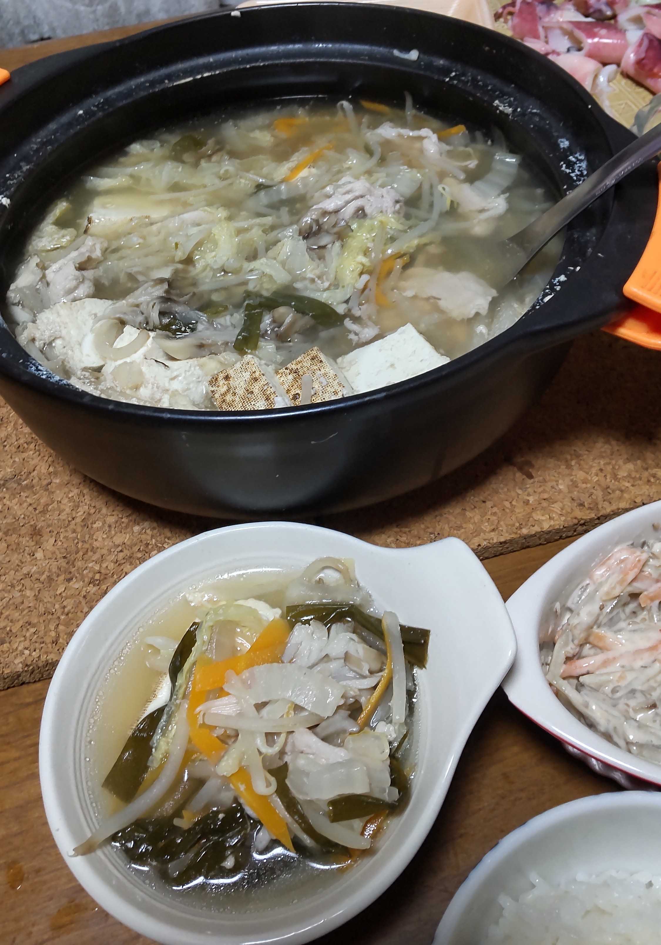 急に寒さが戻ってきたみたい。昨日は 寒かったなあ~昨夜の晩御飯は お鍋。塩レモン鍋の素 みたいなのを買いまして、作ってみました。白菜 モヤシ 人参 万能ネギ 豚肉 焼き豆腐 が入っています。さっぱりと美味しかったです。あとは きゅうり麹漬 ごぼうサラダ ボイルやりイカ 山葵昆布。寒い寒いというパパは 日本酒です。二人で 4人用のお鍋 食べ切りました。うん、美味しかった。【冨貴食研】塩レモン鍋の素 150g×6個セット(冬季限定品)【沖縄・別送料】【05P03Dec16】【ひろしま牡蠣の塩レモン鍋缶】ヤマトフーズ 塩レモン鍋 ご当地缶詰 レモン鍋 塩レモン 缶詰 広島土産