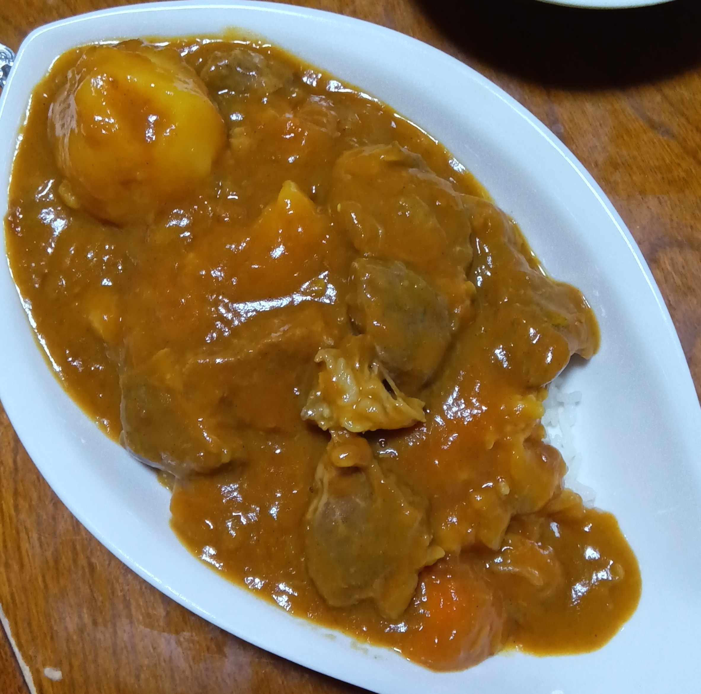 圧力鍋で丸ごとじゃがいもでカレーです。