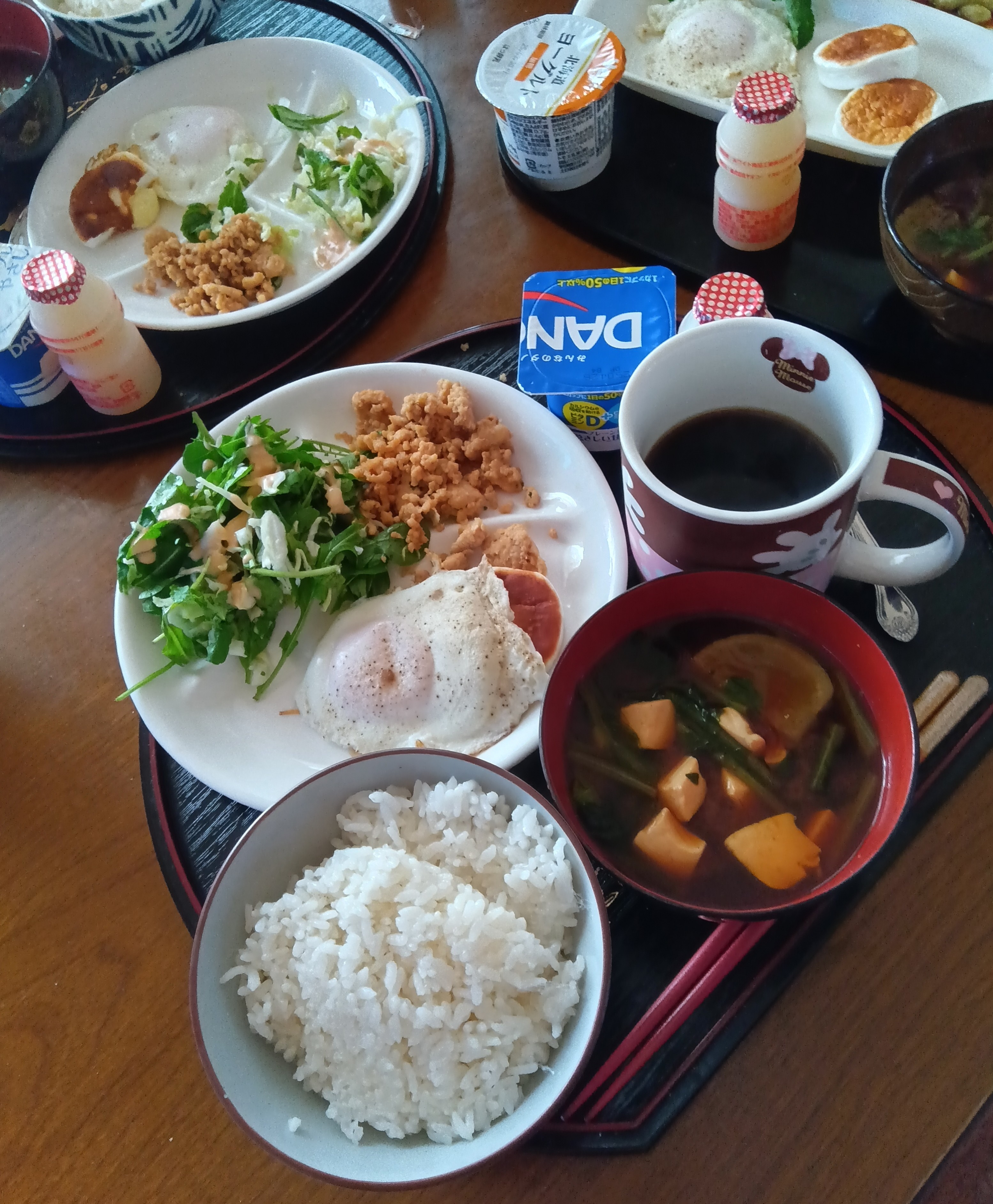 土曜日の朝ご飯、長女とパパと私の朝ご飯。