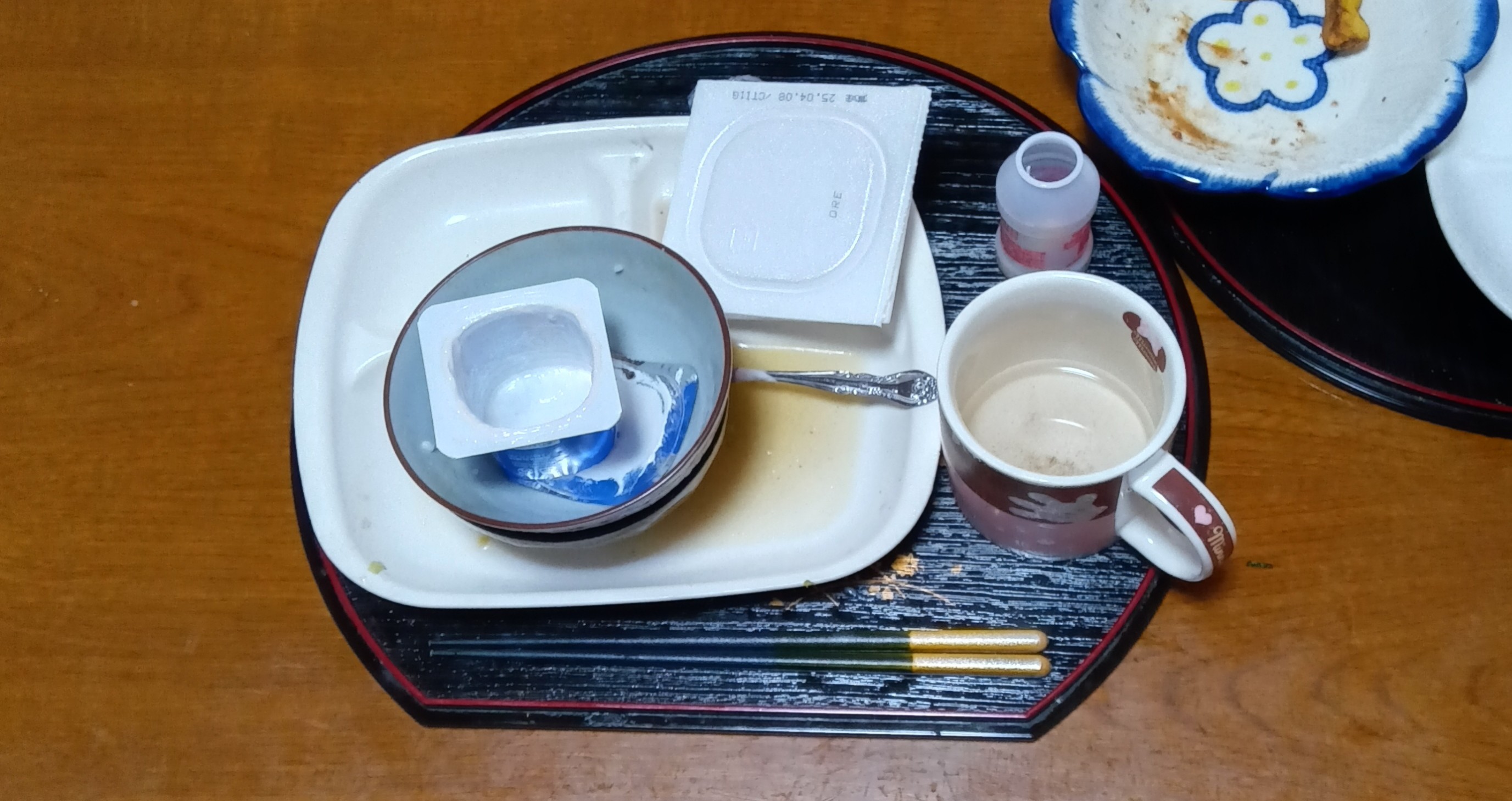 お弁当のおかずの残りが朝ご飯のおかず。
