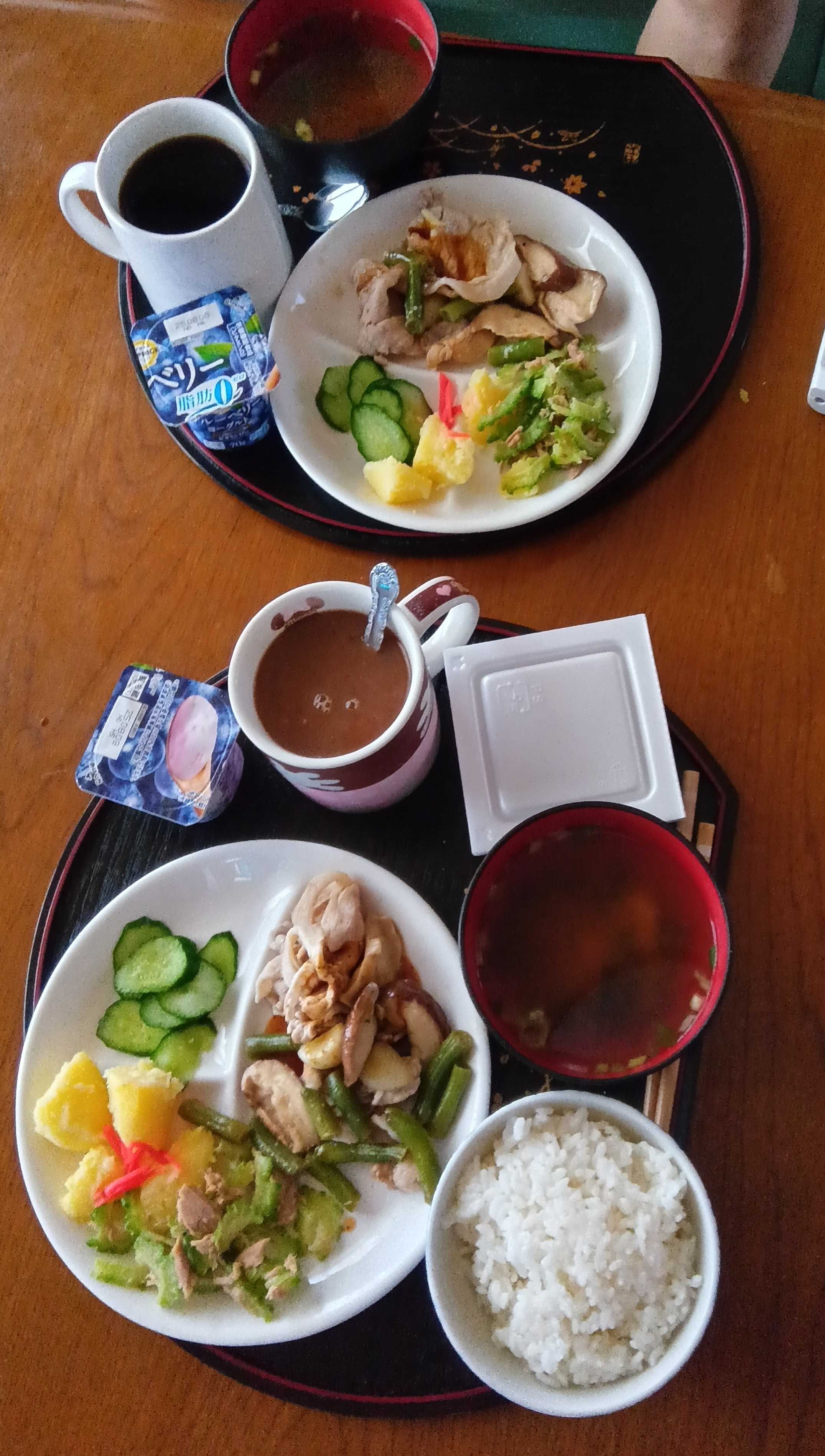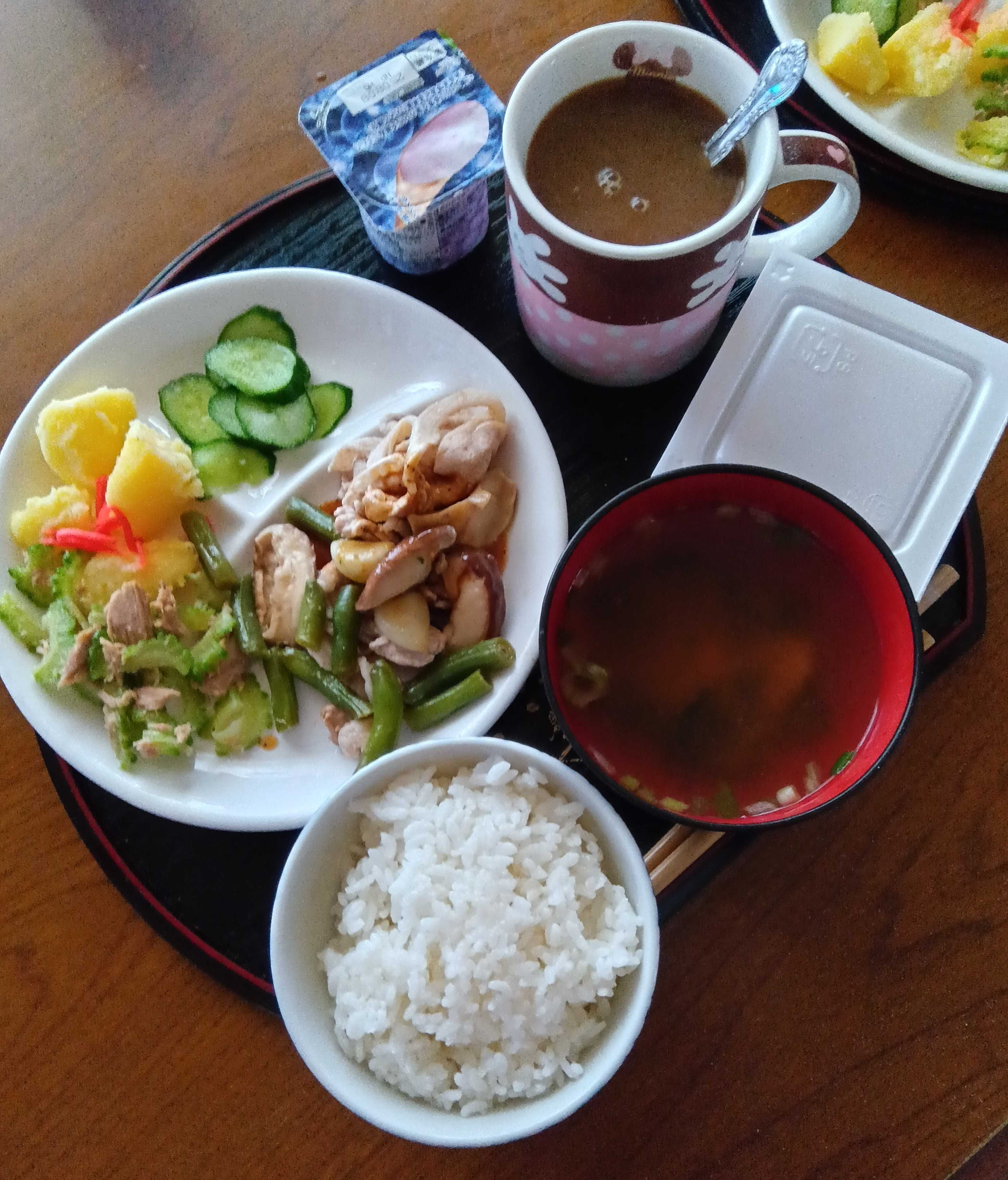 粉ふきいもや豚しゃぶ肉、ゴーヤツナ炒めがおかず。