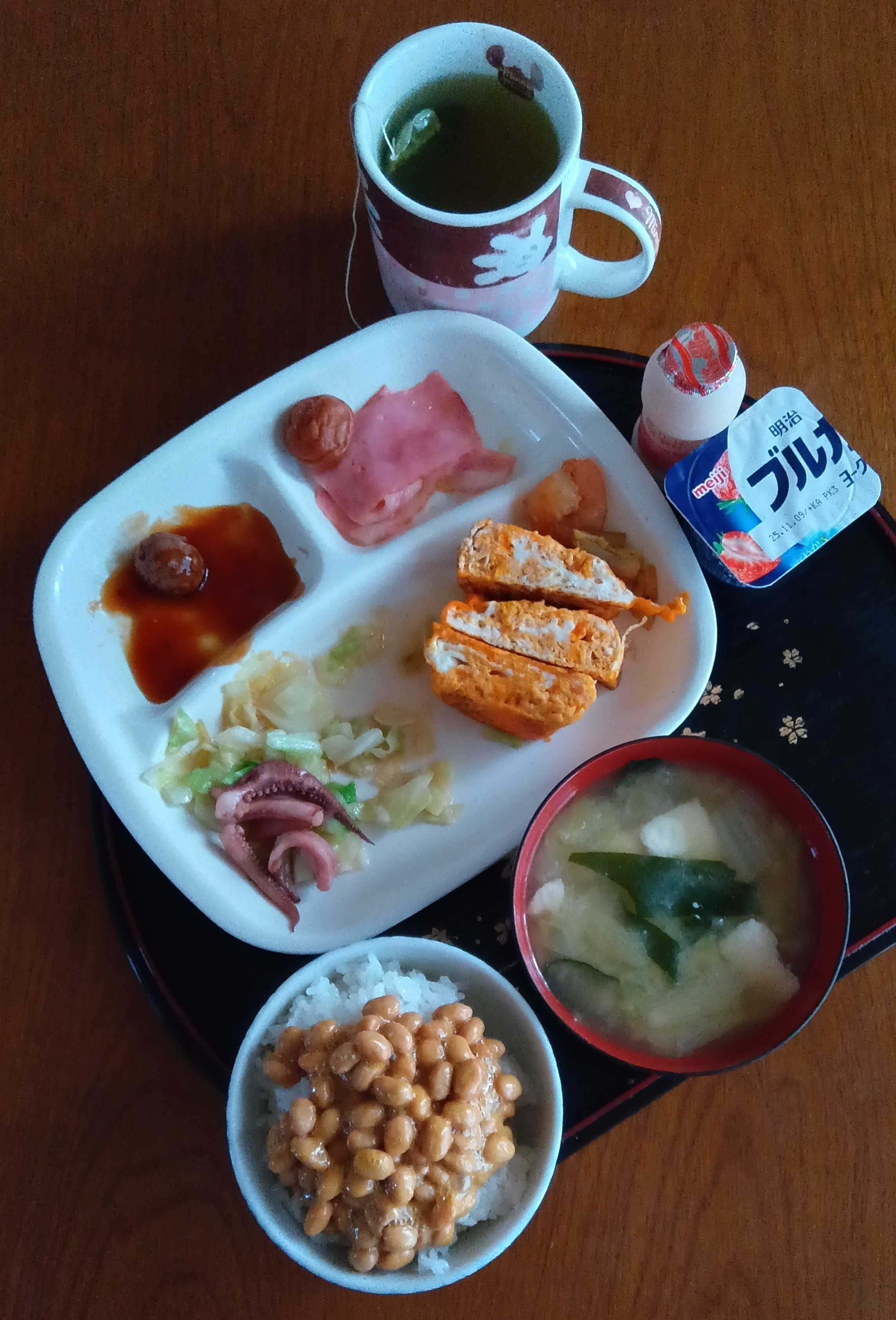 お弁当のおかずの残りは朝ご飯のおかず。