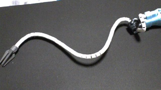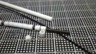今回は、武器のヒートロッドを製作します。グフカスタムのヒートロッドは、リード線の先に錘を付けただけの味気ないモノになっていますので、今回は、格好良いヒートロッドにしたいと思います♪製作方法は、簡単!いつも私が作っている 動力パイプの要領です♪用意する物は、3mm径のプラ棒、1.5mm径のスプリングユニット、その中に通す腰のあるリード線、あるいは針金。道具は、↑の写真の様な、1mm径以下のピンバイス、1.5mm径ピンバイス、丸い金ヤスリ、ノコ、かな…。ここで、パイプ作りのコツを…まず、穴を開ける部分の中央に、千枚通しみたいな先の尖がった物で、あたりを付けておく。そして、↑の写真の様に、細目のピンバイスで穴を開けます…が!ここで注意!かなり面倒臭い作業なので、一気に深く穴を開けたくなりますが…そうすると、奥に行くにつれて穴がセンターラインから外れてきます。なので、穴開けは、例えば長さ3mmのパイプを作る場合、1.5mm~2mm位で止めておきます。で、同じ要領で、1.5mm径ピンバイスで穴開け、この時も 2mm位までで止めておきましょう。その後、長さ3mmに切断!そして、↑の写真の様に、切断面をペーパーで表面処理して…反対の穴の開いてない方に、今までやった要領で穴開けすれば、上下の穴は、ほぼセンター寄りになってるはずです。で、仕上げに、丸型の金ヤスリで、穴の中を調整。実は、これをしないと 穴がきつ過ぎてスプリングを通すことが出来ません。なので、ヤスリで穴を多少拡げる感じですかね♪で、完成したらスプリングを通す。これを、約40回位繰り返すこの様に、パイプを一個一個作って行くのが、キレイなパイプ作りのコツです♪だだ、かなり面倒で、根気のいる作業なので 手軽に作りたいのであれば、市販のパーツなどで製作するのをオススメします。私の場合は「味」に こだわって製作していますので、この様な面倒な作業をしています♪ ↑にほんブログ村 ブログランキング参加中です、応援お願いします♪