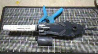 まず、前回作ったパーツを組み合わせ、元のパーツの銃身をバッサリ切断!で、新たに作ったパーツを接着。↑こんな感じね♪今は、違和感ありますが、サフでも吹けば、格好良く見えると思います♪ ↑にほんブログ村 ブログランキング参加中です、応援お願いします♪