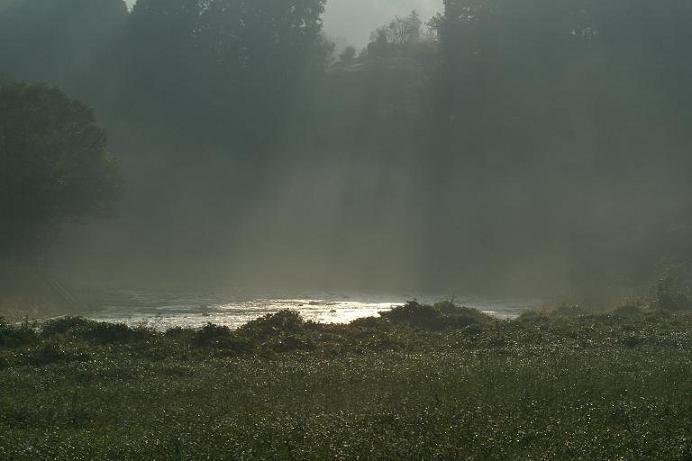 やっと頭の中を支配していた仕事が大好評の内に一段落ついた。 今日は土曜日出勤の代休日^^やっほ~~~~~^ぉ^~~~~~な気分。昨日の日曜日さっそく一眼レフデジカメを持ち出して桃太郎と狸のサンポの後を追いかけました。初めて外に出て最初にシャッターを切った記念の一枚。ドキドキしました。。 ガシャ!!という感じの音がしてシャッターが切れました・・この写真「朝」と名づけました。それから何枚か同じような写真を撮りつつ歩いてヤッパ鳥でしょ。。鳥!と思って探すがこんな時に限って鳥達が姿を見せないしばらく歩いていると青サギがずっとむこうの山の上の木の上から眼下の川を眺めているあまりに遠いし背景が面白くないので何枚か撮ったが掲載はあきらめた。代わりに鴨。 水の中にも秋が感じられるかナァ。。 それにしてもでかすぎた?・・;丁度いいサイズに映ってくれないものか・・;何事もホドホドってのがいいよな~^^;