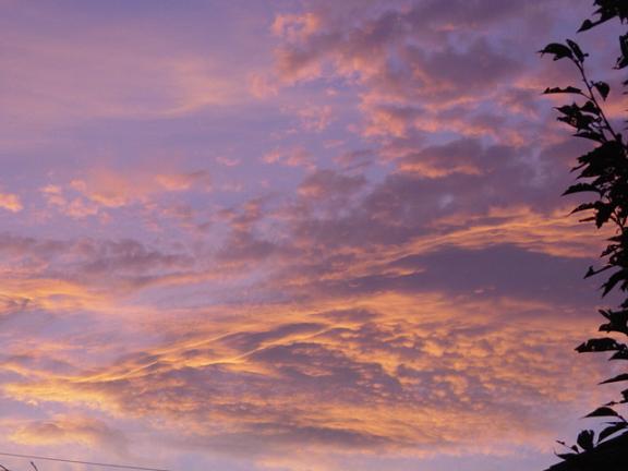 今日の夕焼けはすごかった^^久しぶりにすべて周りが茜色に染まった。台風13号は九州、長崎を直撃していつものように去って行った。昨夜一人で台風の中で心細い思いをしているだろう長崎の母に電話をしたがツナガラナイ・・;朝、もう一度電話をしたがツナガラナイ・・;多分兄嫁と片付けに追われているのだろう。。そう思い昼頃又電話をかけてみた。はあるんか! も~ひどかったばい!! なんでんかんでんひっちゃかめっちゃかたいね!となりん駐車場の赤いコーンは○○病院のとこまでとんでいっとってさー○○さんとこは雨戸のなかけんガラスの割れてさーと元気のいい実況中継がはじまり^^ ワタシもホッと一安心。天気予報を見ていたら新潟の方はメチャ暑くなりそうって。。地球大丈夫かなぁ。。 きれいといって眺めている夕焼けのむこうにはなにがあるのだろう。