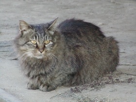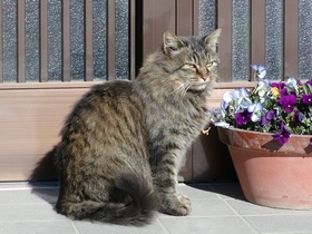 昨日は、どこぞに雲隠れしてしまって姿を見せず、画像を撮りたくても撮れなかったのですが、今朝は、いてくれたので、撮れました!かわいいもんでしょ。でも、画像だとわかりにくいと思いますが、でかいんです!ネコっていうより、タヌキです。で、メスなんだけど、やけにスルドイ目つきをしてるというか、強面というかで、身体もでかくて毛がフサフサでご立派に見えるので、ほとんどの人が、メスとは思わないようです。アップで顔を見ると、怖いでしょ!睨まれると、子供はビビリます。年末に甥っ子が泊りに来たのですが、怖がって、近づこうとしませんでした。でも、実際は、かなり人懐っこくて、誰にでも愛想が良いというか、媚を売りまくるというか、やたらと八方美人なネコです。だからこそ、野良でも生き抜いてきたのかな???ウチの親は、このネコの鳴き声や顔つき、表情が、昨年亡くなったミミというネコにそっくりなので、もしかしたら、どこぞにもらわれていったミミの子供が、めぐりめぐってウチまで戻ってきたのでは、と考えてるようです。おいらも、もしかすると、そうなのかもと思い始めています。確かに、数年前にブーちゃんに良く似た毛がフサフサの子が産まれて、どなたかのウチに里子に出した覚えがあるんです。だから、そうだったとしても、おかしくない・・・。ま、すっかりいついちゃってるので、このまま大事に飼ってやるつもりです。それにしても、ネコって、人間の心を癒やしてくれる生き物ですな。