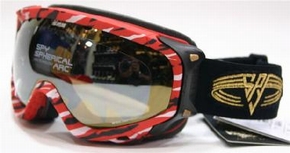 すごいもの、見つけちゃいました!おいらは、ゴーグルとしてカレラの製品を愛用しています。初めて買ったゴーグルが、カレラ。その後も、ずっとカレラ。実は、一度、UVEXに浮気したことがあったのですが、おいらが購入したUVEXのゴーグルは、これっぽっちも良くなくて、結局カレラに落ち着いたと・・・。UVEXのゴーグルは、当時最新の基礎系トップモデルをバカ高い価格で購入したのに、全然だめだったのよね。ある有名な外国人デモンストレーターや、ワールドカップで活躍しているアルペン系のスキーヤーも使用していたし、広告にも出ていたので、とっても期待していたのだが、結果は、最悪と・・・。どう最悪だったのかは、以前スキー編HPのどこかに書いたような気がするので、ここでは書くのやめときます。とにかく、今でもUVEXには、あんまり良い印象持ってません。(UVEX愛用者の方、ごめんなさいね。)で、おいらが使用しているカレラのゴーグルなのですが、CUPという一番お気に入りのモデルは、ヘルメット対応。ヘルメットかぶって、CUPをしても、ピタリとはまります。ところが、ULTRATHERMOってモデルは、ヘルメット未対応。なので、ヘルメットかぶって、こいつを付けると、ピッタリはまらずに、パカパカ浮いて隙間が出来ちゃいます。スキー編HPのDIARYで、昨シーズンMt.JEANSへ行った時の画像を見てもらうと、それが、よくわかると思います。CUPは、レンズの色が濃い目なので、天気が悪い時は、使いずらい。なので、天気が悪い時は、レンズの色が薄いULTRATHERMOを使うのですが、ニット帽ではなくヘルメット使用だとおかしなことになると・・・。で、ヘルメット対応ゴーグルで、レンズの色が薄いもので、価格の安いものはないかと、ネットで検索してたんですが、すごいものを見つけちゃいました。これって、SPY OPTIC+ ってところのROCKってモデルのKicksってカラーのモノです。どう見ても、VAN HALENモデルよね!ベルトに入ってる SPY のロゴも、どうみたって最近のVAN HALENのロゴをパクッてるよね。(パクッてるというより、パロッてるか???)今シーズンは、買う気無いけど、来シーズン、お手頃な価格で売られていたら、買っちゃうかもね!(ギターじゃなくて、ゴーグルよ!)ヘルメット対応してるようだし・・・。(きっと、UME36様も、欲しくてしょうがないと思ってるに違いない!)とにかく、SPY OPTIC+ ってところには、良い意味でアホがいるらしい。今後は、ここのゴーグル製品に注目したいと思ってます。
