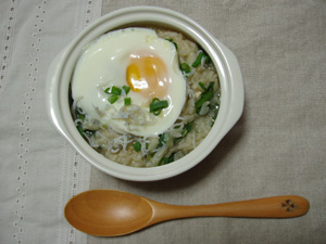 昨日の晩ごはんが【野菜たっぷりの鍋】でした。こたつに入りビールと鍋。で~今日の朝ごはんは鍋の残りで【雑炊】です。