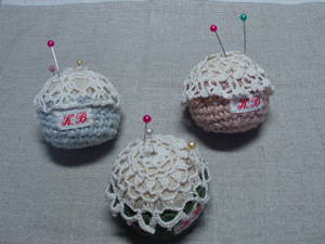 先週、編んだレースのモチーフでピンクッションを作ってみました。