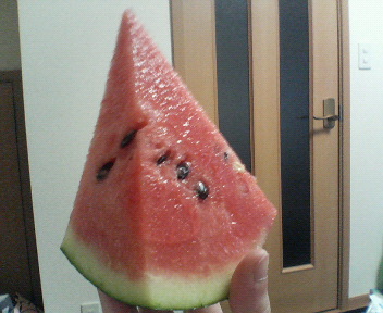 ハチの家の冷蔵庫は1玉のスイカで埋め尽くされてます・・・。