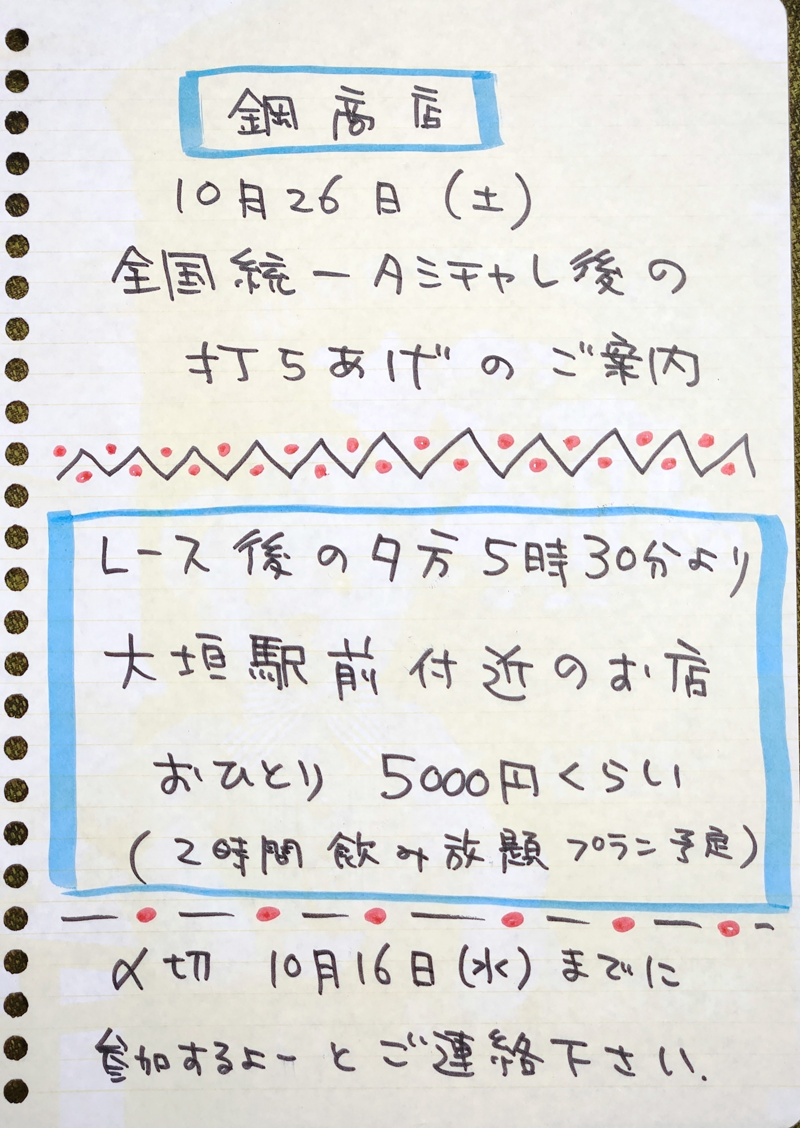 10月26日開催の 全国統一タミチャレ ご参加ありがとうございますお疲れ様でした クライマックスも楽しみましょう懇親会も最高でした ありがとうございました