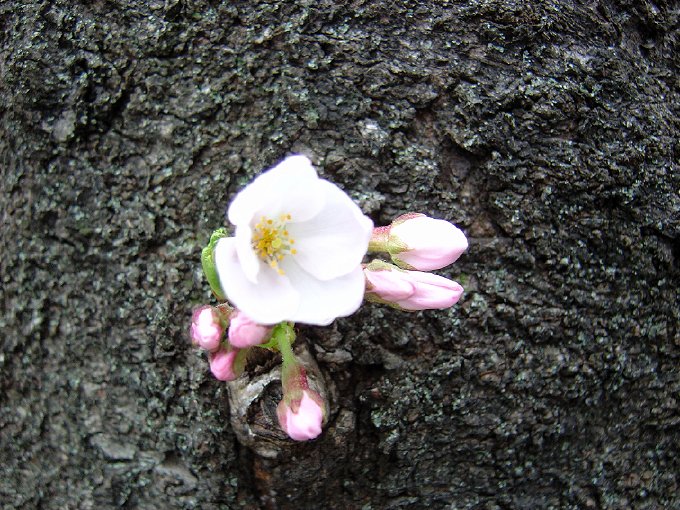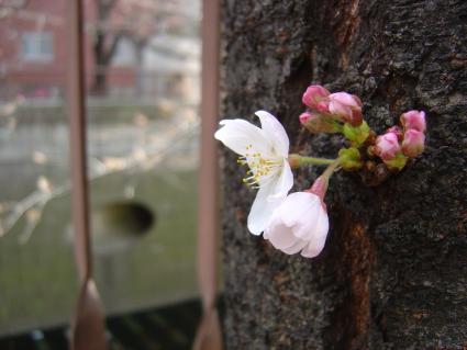 先日のことですが。某所で桜が咲いているのを見つけました。これはたぶん、染井吉野ではないんだろうな。なんて種類の桜だろう??関東の桜の開花ももう間近。今年もきれいな桜並木を見に行けるといいな。