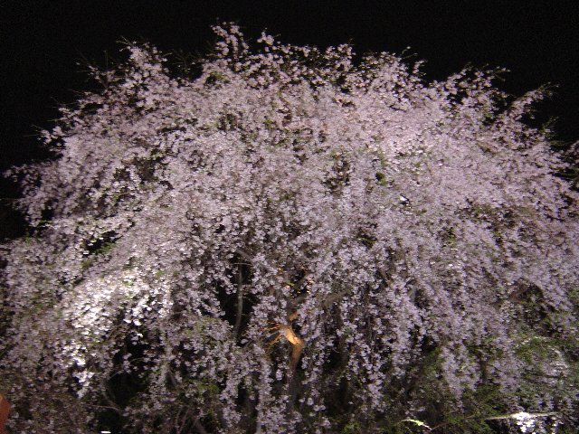 六義園で枝垂桜の夜間ライトアップをやっていたので、見に行ってきました♪持っていたデジカメで写真を撮ってみた。ん~、なんかお化けが出そうな写真になっちゃったヘ(゚д゚ヘ))))))~
