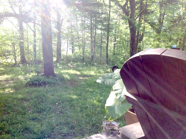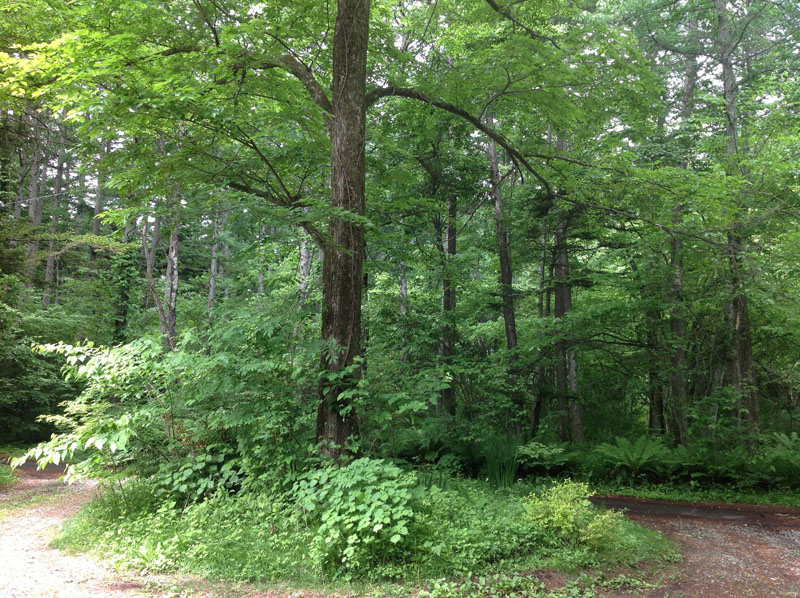 ^雨が降る程に緑が濃くなります。すでに雑草だらけの森になってしまった庭。家を建てたとき、木をなるべく切らないでおいたので、夏は葉が茂ってすっかり日陰です。おかげで、こんなに場所があっても畑はできません。日陰ならではの面白い植物はいっぱいあるけど・・・・・梅雨が明けることには、草刈りしてね、ダンナさん。