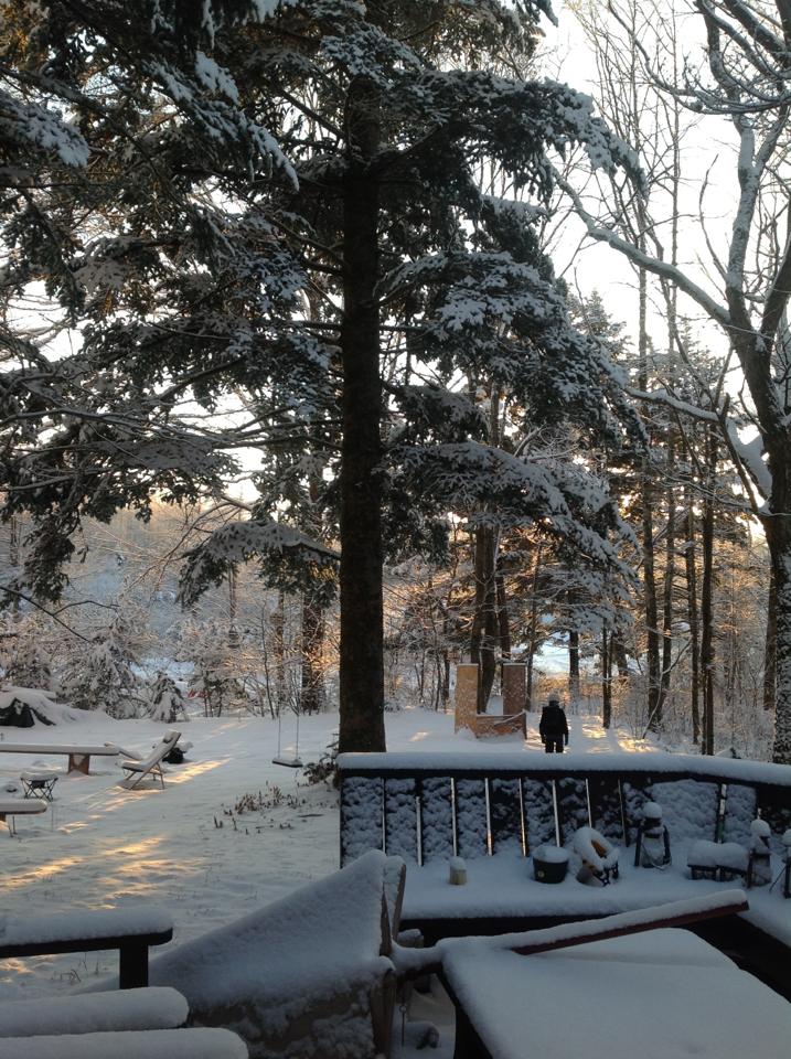 連投ですが、こちらは軽井沢、雪の朝です。真っ白な寒い朝・・・・息子が学校にでかけていきます。寒いのに、いくら言っても薄着ででかけます。スノーシューズもはかず、スニーカーです。なんでだろ?寒くないのかなあ。雪の降った翌日、晴れた夜明けはほんとうに神秘的。6時ごろ起きると、まだ外は暗く、見る見るうちに明るくなって行きます。森の雪が青から紫、オレンジ、水色と変わって行く様は、ついつい魅入ってしまいます。