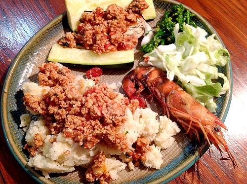 昨日の夕飯。マッシュポテトとズッキーニ&茄子のミートソースがけ、コールスロー、スティックセニョール、昨日のBBQ余り物のエビさん。生野菜がほしかったのですが、お皿がきついのでやめました。ボリュームたっぷりにみえますが、ミートソースとエビ以外はお野菜です!今日のお昼は一人だったので、お友達が焼いたワイルドブルーベリーパンと、畑でとっやばかりの春菊、紫蘇、イタリアンパセリ、きゅうりのサラダ。目玉焼き以外は頂き物って、、、どんだけ人様に頼った食生活なんでしょ(~_~;)夏はお野菜をたくさん頂けて、ほんとうに幸せ。もう東京のお野菜は食べられませ-ん