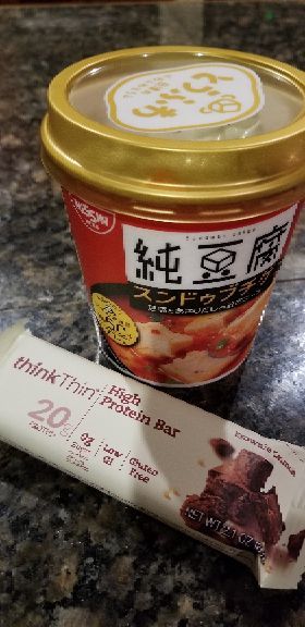 プロテインバーばかり四種類も買っちゃった。どれも糖質がほとんど含まれてません。 基本、三食のうち一食は糖質カットのプロテインバーか、プロテインパウダーのシェイクにしてます。 体を動かす日とかで糖質をとりたいときはSOYJOYクリスピーとか、森永のINバーをおやつに。糖質とたんぱく質が同じくらいの割合なので、コントロールしやすいから。 がんばってたくさん食べても、一食のたんぱく質を20g以上とるのってなかなか大変なのだ。 こういうのにおきかえると、プロテインが簡単にとれて、普通の食事よりカロリー低い。しかも、腹持ちいいんだなー。 今日は出張にお弁当もってくのが面倒だったので、ランチをプロテインバーと、コンビニのたまごツナサラダにしました。