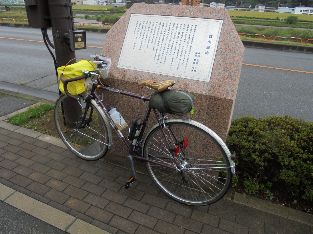 そして、歌碑と一緒に自転車の写真を撮ります。今回唯一の写真?