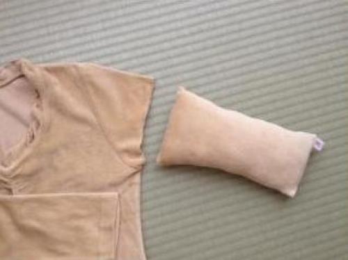 またまた、リメイク。電気あんかカバー(4/2('09)の日記)を作って余ったカットソーの袖で、お昼ねピローを作ってみました。イニシャルテープでアクセント。寝心地?まあまあです(笑)。顔に腕時計の跡や、服の皺とかつかないのは、良いことだと思います。