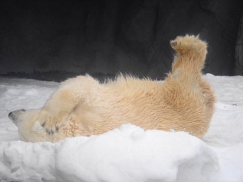 私じゃなくて、息子とばあばが行ってきました。 私の大事なデジカメを貸し出ししたのでその成果をご披露いたします~~。 白熊・寝っころがる。 カメラマンは小3の息子。なかなかナイスショット! お腹を見せて泳ぐあざらし。 白熊と同じくお腹見せのポーズですな。 ライオン。息子曰く「すんごく近寄って撮った。」力作。 ペンギンのお散歩。これが旭山動物園の名物みたいです。 時間になると両側に人がたくさん集まってきて・・・といってました。 動物園の途中でデジカメの充電が切れ、撮れなくなってしまったそう。 おかしいなぁ。 ちゃんと充電して渡したんだけど。 しかも充電器を持たせなかったものだから写真はここで終わっておりました。 私が「動物たちたくさん写真撮って見せてね。」 と言っていたから、動物の写真ばかりなり。 少しは人物の入った写真も見たかったぞ。 人物が入ってるのは37枚中、5枚だけだった。 まっ、こんなもんかな・・・・・ ちなみに旭山動物園の入場料、大人580円、子ども無料。 やっすーーーーい。 近かったら行きたいーーーーですね。