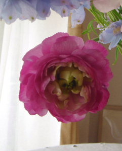 1番好きな花は何? と聞かれたら、季節によって好きな花が変るので答えられない。 でも1番なくてはならない花は? と聞かれたら 迷わず「デルフィニューム!」と答えます。 家にある花をアップで撮ってみたら・・・・ アプリコット色のカーネにはライラックラベンダー色。 シンクのカーネには深い青。 カーネーションの横にはデルフィニューム。 ただカーネーションがあるだけより、よりその色を引き立てる役割をしてくれる。 主役の用に透明感のあるきれいな色だけど立派な脇役なんですよ、デルフィは。 ええぃ、おんなじような写真ばかりだけど今回はデルフィがきれいなので いっぱい載せちゃお。 上の写真、デルフィにピント合わせてみた。 前にも似たの載せたよね。 あーー、大好きなデルフィニューム。 たくさん見てもらえて大満足。 ちなみにこのデルフィたち。年末の残りです。