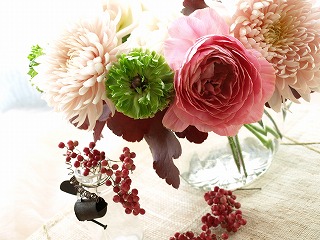 今日もまた花展の練習作品です(*^O^*) 自分で刺繍した作品を椅子にのせて刺繍した図柄と同じものをテーブルに再現しよう~というもの。当日は刺繍にあるようなポットとカップもお目見えしてお花も同じようにバラがメインになるのだそうです。最初、生徒さんにアイディアを聞いたときなんて素敵なのーーと思いました!刺繍はとても手が込んでいてすばらしいです。どうぞ当日じっくりそちらもご覧になってくださいね。 今日、花展のときに展示する私のプロフィールや教室の様子を撮った写真を持って生徒さんが打ち合わせにきました。私の花教室で唯一の20代。若くてかわいい彼女は本業がカメラマンさん。(主にブライダル)その彼女が「今度の花展で先生の写真飾ろうと思ってー」といってくれたのはだいぶ前のこと。ありがとーーとそのときは答えて深く考えていなかったのです。先週の花教室のときに「写真撮りに行きます。」といって撮りに来てくれて初めてちゃんとしたポートレートを撮るんだったんだーと気がついた私。窓側に椅子をセットしてお花なんぞ持って撮っていただきました。だいぶ恥ずかしいですが・・・・ぼんやりとフィルター(?)がかけられあっちこっちが修正されてすばらしい写真が出来上がりました♪(私の中で精一杯の・・・これ以上望んではバチがあたります。)・・・・・でも、実物が同じ場所にいるというのに写真と違うーーーと来てくれたお客様が驚きはしないか・・・・ちょっと心配。お教室の様子もまたこれから撮ってくれるそうです。花展のときは彼女の撮った写真も一緒にお楽しみくださいましね^^