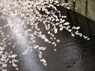 都内の桜が満開になったのでちょっと足を延ばしてお花見に行ってきました。お花見といっても桜の下をひたすら歩くだけです。 昼間は目黒川の桜。去年の年末、目黒川沿いのお店に遊びに行った時川面に垂れ下がる枝を見て「これは絶対に桜が咲いたらすばらしいに違いないっ。」と確信。桜が咲いたら見に来よう~とそのとき決めていました。 桜のすばらしさが伝わるほどの写真は撮れなかったけど川面につきそうな桜の花たちはとても美しかったです。 夜になって家に帰る前にちょっとどこかの桜を見ていきたいよねと桜ではとても有名な千鳥ヶ淵のそばを車で通りました。雨も降っていたしそのまま車の中から見物して帰るつもりがあまりのすばらしさに素通りできませんでした。急いで駐車場を探して、雨の中、傘を差しての夜桜見物。まだデジイチを使いこなせない私は真っ暗な中でシャッターを押すとブレブレの写真ばかり。夜景モードで撮ってたんですけどねーでも、雰囲気だけいい写真が1枚だけ撮れました。 これ。暗すぎ?わかります?手前の菜の花(確か)がライトアップされて向こう岸の桜が霞がかかったように咲いてそれは見事でした。 今まで千鳥ヶ淵の桜は有名すぎて見に行きたいと思ったことがなかったのですが満開のときに偶然に出会ってあまりのすばらしさに大感激でした。有名ってことはやっぱりそれなりの理由があるってことなんですね。しみじみと思った夜でした。