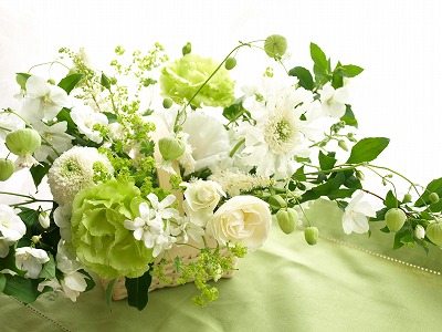 先日、自宅にもグリーンと白の花あしらいをしましたが今日の花教室・基礎コースもグリーンと白でまとめてみました。5月なので爽やかに~~今日の基礎コースの生徒さんは2人とも始めて間もなかったのでなるべくたくさんの種類のお花を活けてもらいたかったのです。お花のなまえ*梅花うつぎ *スカビオサ *グリーンベル *リシアンサス*バラ・トゥモロービューティー *ダイヤモンドスター *ゴテチャ*ぽんぽん菊 *アスチルベ *アルケミラモリスたったこれだけのお花に10種類。活ける本人はかなり大変そうでした。でもお花の特徴を見ながらきれいに活けてくれましたよ。 グリーンベルベルのようにゆらゆら揺れてとってもかわいい(*^o^*) スカビオサ1人の生徒さんが今日1番気に入ってくれたお花。繊細な茎とヒラヒラの花びらが絶妙で私も大好き♪ 今朝の嵐。ひどかったです・・・・・・お昼ごろ風がおさまったのでテラスに出てみたら見るも無残なバラたちの姿が。こんなことになるからと慌てて昨日切って活けたのだけれどこんなにヒドイことになるなら全部切ってしまえばよかったーーーー激しく後悔。想像以上にひどかったね。今日の嵐(T_T)