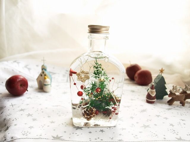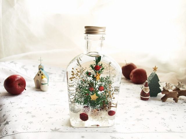 ウィスキー型のビンにクリスマスツリーが入っております。