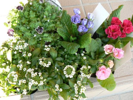 13℃ 13℃ 13℃でございます~ 今日の予想最高気温です どうしちゃったの、この陽気? もちろん、今日もお庭へレッツゴー 昨日は行ってきましたよ~園芸店 とりあえず、プリムラ・アリッサム・ネモフィラの苗をゲット プリムラは3色 アリッサムは普通に白(花壇のアリッサムが消滅の危機) ネモフィラはブラック(ブルーはこぼれ種でどんどん増殖中) 帰ってからは、プリムラとアリッサムで寄せ植えを作りました 寒さに負けず、モリモリになってほしいな~ で、午後はまた同じ園芸店へ 午前に行った時、お目当てのニオイスミレがなかったの~ どうやら大量購入したお客がいたとか・・・ ガッカリしていたら店員さんが 「今日の午後に入荷しますよ~」って教えてくれました 無事にニオイスミレも購入 あれ?ニオイスミレの他にもあるでしょ!?って?? バコパの3色ステラも買ってきました~ 今日は、またまたお庭作業 液肥をあげたり、寄せ植えを作ったり 色々と頑張りたいと思います 皆さんもガーデニングかしら~ ランキング挑戦中です!!こちらのバナーをポチっとクリックしてくれたら嬉しいです ↓↓にほんブログ村クリックありがとうございます1日1クリック有効です