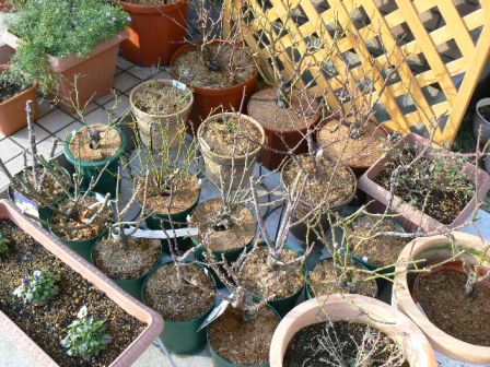 今日は午前中から穏やかな天気だったので 全てのバラの葉をむしり 剪定をしてしまいました~ 少し早いかとも思ったけれど、外に出られる日にやっておかないと 次はいつ作業できるかわからないので・・・ 大雪なんて降られたら融けるまで時間がかかるし 足元もわるくなってしまいます 葉をむしるのって楽しい プチプチと面白いように取れる~ 剪定は始めは躊躇するものの、 ペースが出てくるととまらな~い バツバツとどんどん切ってしまうので、 終了の姿を見ると 「ありゃ、切りすぎ??」って思います 葉をむしるのも、剪定するのも ちょっとしたストレス発散になるようです あれ、私だけ カイガラムシにやられて、秋に強剪定したグラハムトーマスも しっかりした太い新芽がいくつも伸びていました 他のバラたちも紅い芽が沢山見えて 春が更に待ち遠しく・・・ 作業後、現在のバラの本数を数えたら31本でした これから確実に増えるのは12本 合計43本の開花を楽しみに冬の作業をこなしていきたいです ってか、そんなに増えてだいじょ~ぶ、私 ・・・頑張りますっっ 今、外でなんとか咲いているのは虹色スミレとブラキカムだけ 寒さと雪と霜で多くの草花が冬眠&グッタリしています 明日は園芸店&HCを覗いてきま~す お目当ては・・・クリスマスローズ ついにクリスマスローズにも手を出すのかっっ 乞うご期待 ランキング挑戦中です!!こちらのバナーをポチっとクリックしてくれたら嬉しいです ↓↓にほんブログ村クリックありがとうございます1日1クリック有効です