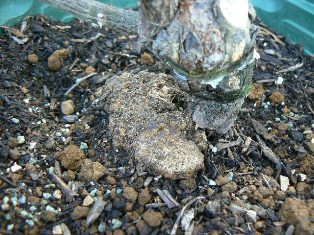 朝からポカポカ良いお天気最近忙しくしていましたが、幸い今日は外出の予定もなかったので午前中2時間半午後も2時間ず~っとお庭作業をしていましたこんなに暖かい日は今年最後かもと、それはそれは必死に作業しましたよ汗をかき、着替えました先日アンブリッジローズの株元にみつけた癌腫らしい物体 手術開始ですまず鉢から出してみました鉢底まで根がびっしり 根をなるべく傷めないよう土をほぐしますこの土、鉢に入った状態だと気付きませんでしたが粘土質でやっかいな土でした(○○バラ園芸さん、もう2度と買わないよ)コブの姿が見えてきました直径7cmほど予想以上のサイズ これを良く切れる小型ナイフで切除結局、土中の根っこにも1円玉サイズの癌腫2個発見切り取った癌腫です 上手くキレイにとれたのか微妙ですが・・・ 木酢液の原液で消毒し、切り口にトップジンを塗りました 剪定時の切り口ゆ合促進に トップジンMペースト 100g新しい鉢にバラの家さんの土とお馬の堆肥などで植え付け完了こうして見ると、やはり他の株より頼りない株に見えます これが、私のできる限りの対処でした来春、このアンブリッジローズがどうなっているか・・・バラの生命力を信じ、今後も気をつけてお世話したいと思いますちなみに・・・使った用具は熱湯消毒鉢・土は廃棄しました作業中、何かがフワフワ~と飛んでいると思ったらブルースターの種が~~~急いで採りました ランキング挑戦中です!!こちらのバナーをポチっとクリックしてくれたら嬉しいです ↓↓にほんブログ村クリックありがとうございます1日1クリック有効です