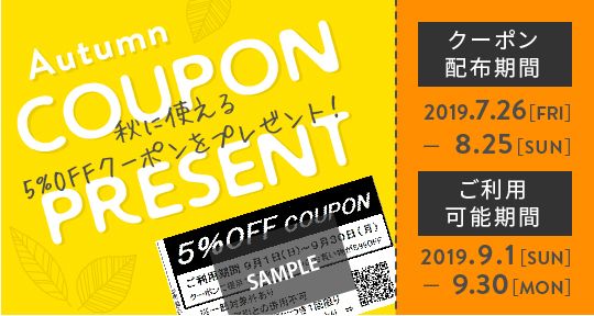 秋に使える5パーセントオフクーポンが