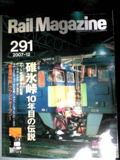 わーいわーいわーい「レイルマガジン」2007年10月号たまげたこれにそっくり。「レイルマガジン」1996年6月号まさか再発売と思ったが違った。そっかーやってくれるところがあったか。うれしいねぇ。僕はこの表紙と、特集の井田定男さんという方のEF63の写真集を見て天地がひっくり返るほどの衝撃を受け、「俺もこれを撮りたい。一眼レフを買おう」と思い立ったのである。今回の特集でうれしかったのは井田定男さんの写真がまた見れることであった。光線状態やアングルはもちろんだけど、何せとにかくバイタリティを持っていないとここまでは絶対出来ない、という素晴らしい写真の数々である。改めてそのすごさと、碓氷峠・EF63の独特な空気感を体験できた。今年で廃止10年、先日の書き込みにも書いたけれど、結構な時間が経ったわけだ。もうあの感動は直には味わえないし、ビデオを観るしかなくなってしまったけれど、一人丸山へ向かう道を歩けば、やはりそこにはあの音あの振動あの興奮の記憶、そんな想いをずるずると引きずりながらのこの日々……ではあったのだが、特にどこかで何かイベントみたいなのがあるわけでもなく、ただ何の変わり映えもしない一日一日が過ぎていくだけではあったわけで、まあ時の流れなんてそんなもんだろう、思い出というものはそういうものなのだ、などと分かったようなことをほざきつついたわけだが。ちょっとまたビデオや自分の写真を見直してみようかな。このブログの鉄道カテゴリーhttp://plaza.rakuten.co.jp/hamandeggs/diary/?ctgy=4僕のサイト「ハムエッグのおもちゃ箱」碓氷峠のページ(長いこと更新してないのですがすみません)http://hamandeggs.hp.infoseek.co.jp/usui/usuiindex/usuiindex.htm