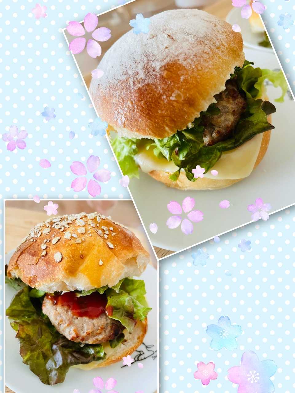 丸パンはこのようにハンバーガーにすることもあります手書きハート手書きハート
