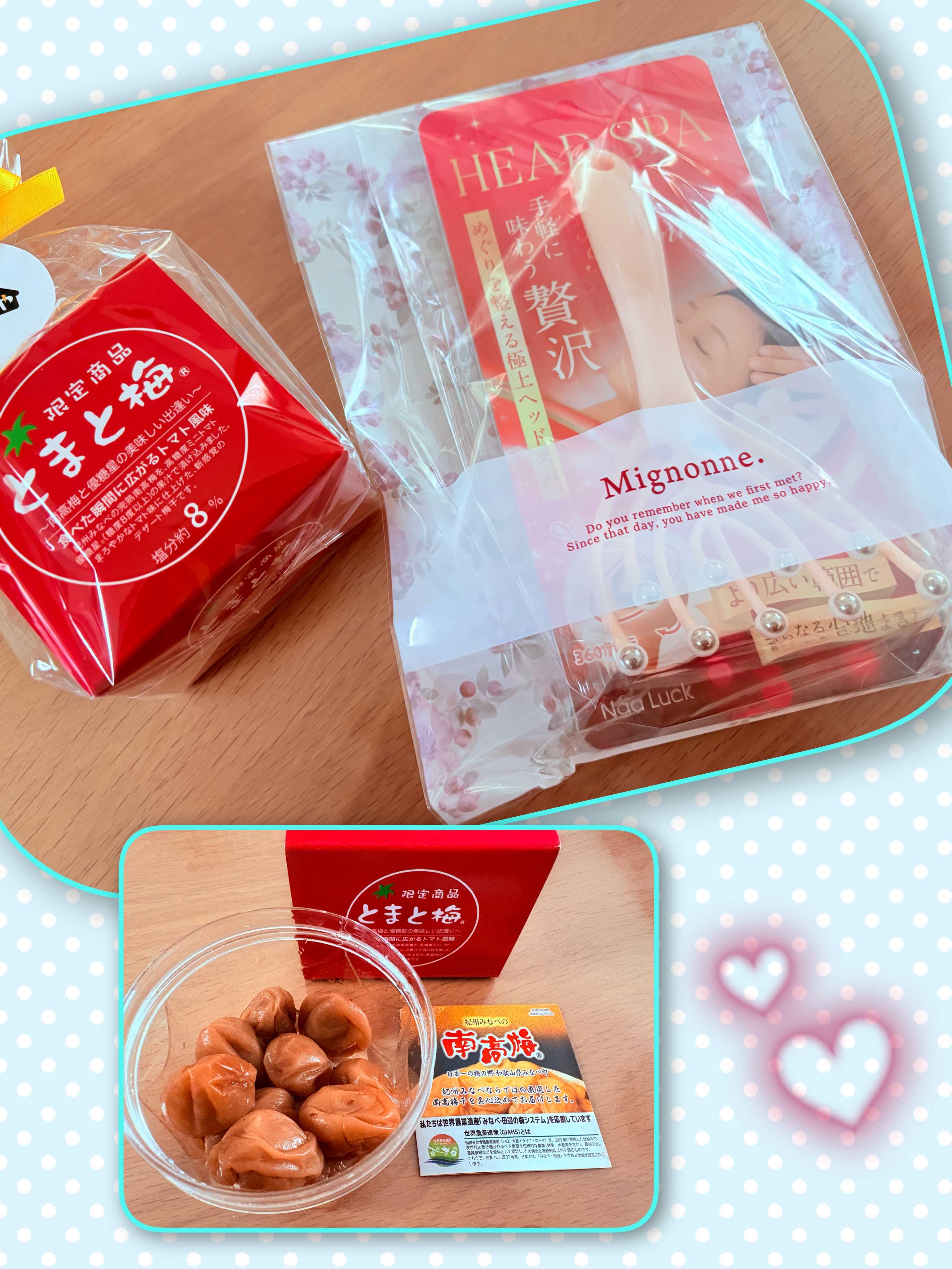 梅は高糖度のミニトマトに漬け込んだ梅らしくて、食べたらトマト味トマト風味を感じるとても美味しい梅でした手書きハート手書きハート手書きハート